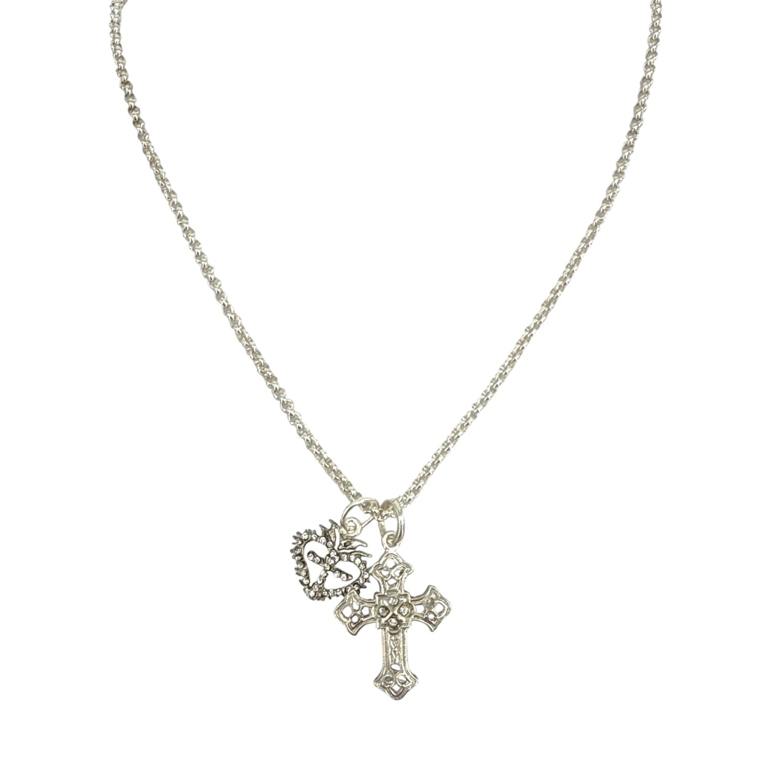 VIRGINS SAINTS & ANGELS VSA Basilica Cross & Sacred Heart Charm Necklace Silver