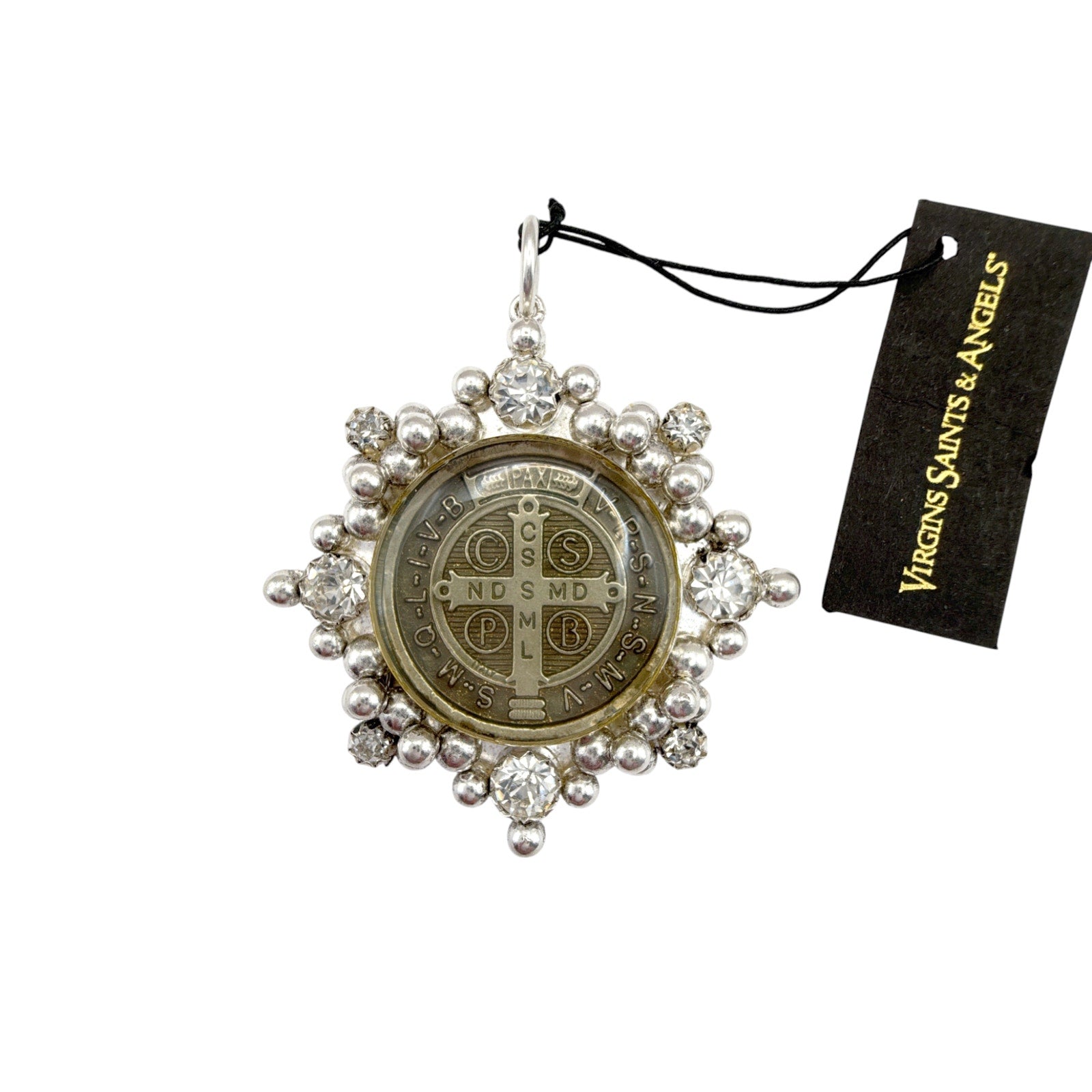 Crafted with precision, the Virgins Saints & Angels' Cloister collection draws inspiration from centuries of spirituality, superstition, and blessings. VSA's classic San Benito Charm, plated over bronze and encased in resin, is a timeless symbol of peace inspired by Saint Benedict—a figure of unwavering strength and conviction.
