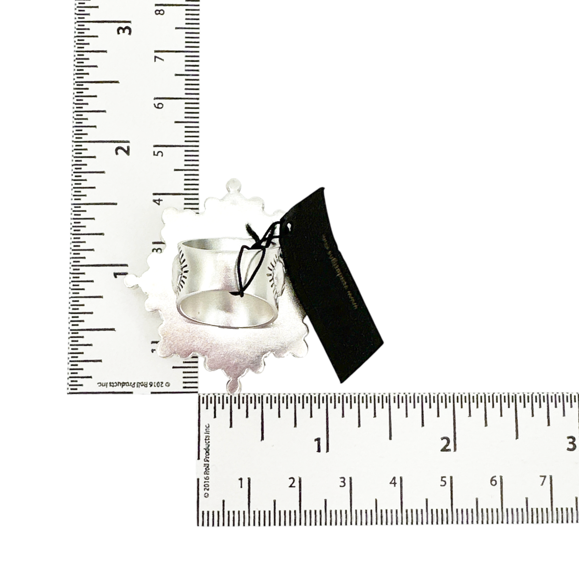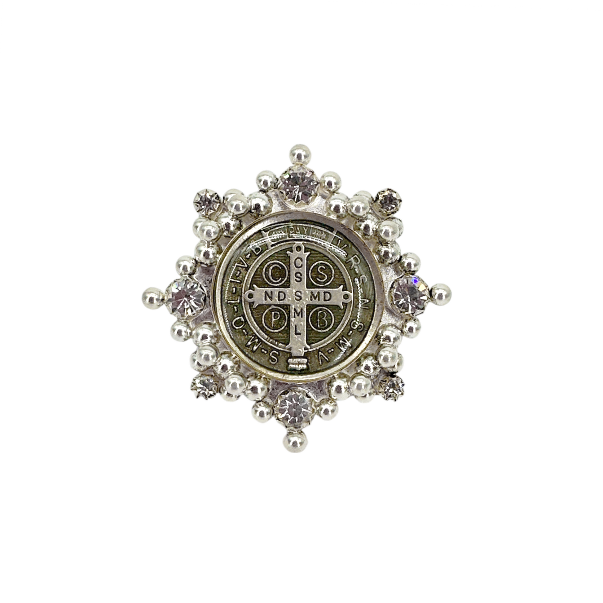 Handcrafted to perfection, the VSA Cloister collection is inspired by centuries of spirituality, superstition, & good fortune. Made with plated over bronze & secured in resin, this classic San Benito Ring, made from sterling silver, features a symbol of peace inspired by Saint Benedict, a patron saint who represents strength and conviction.