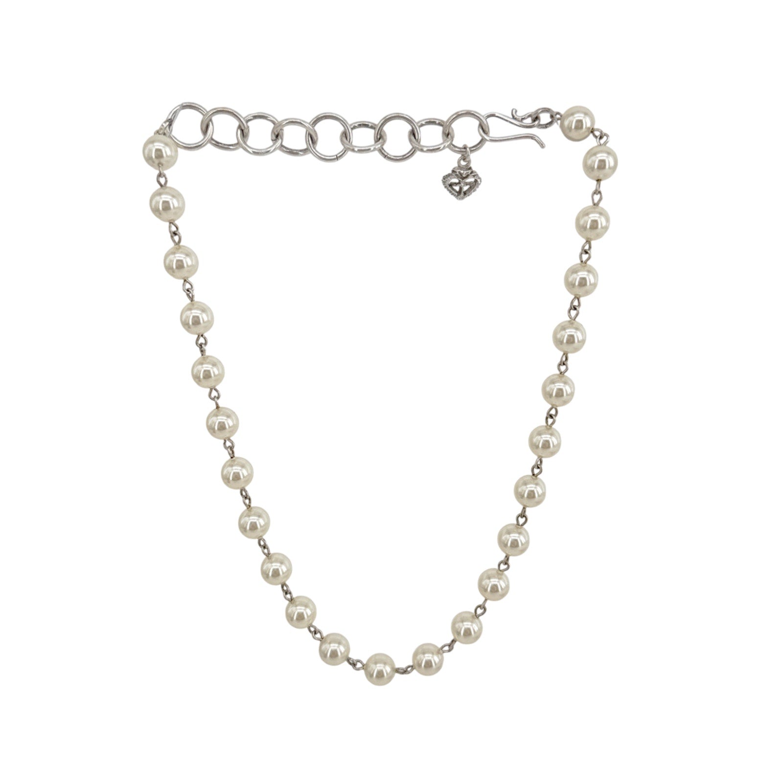 VIRGINS SAINTS & ANGELS VSA Iconic Cream 8mm Pearl Choker in Silver