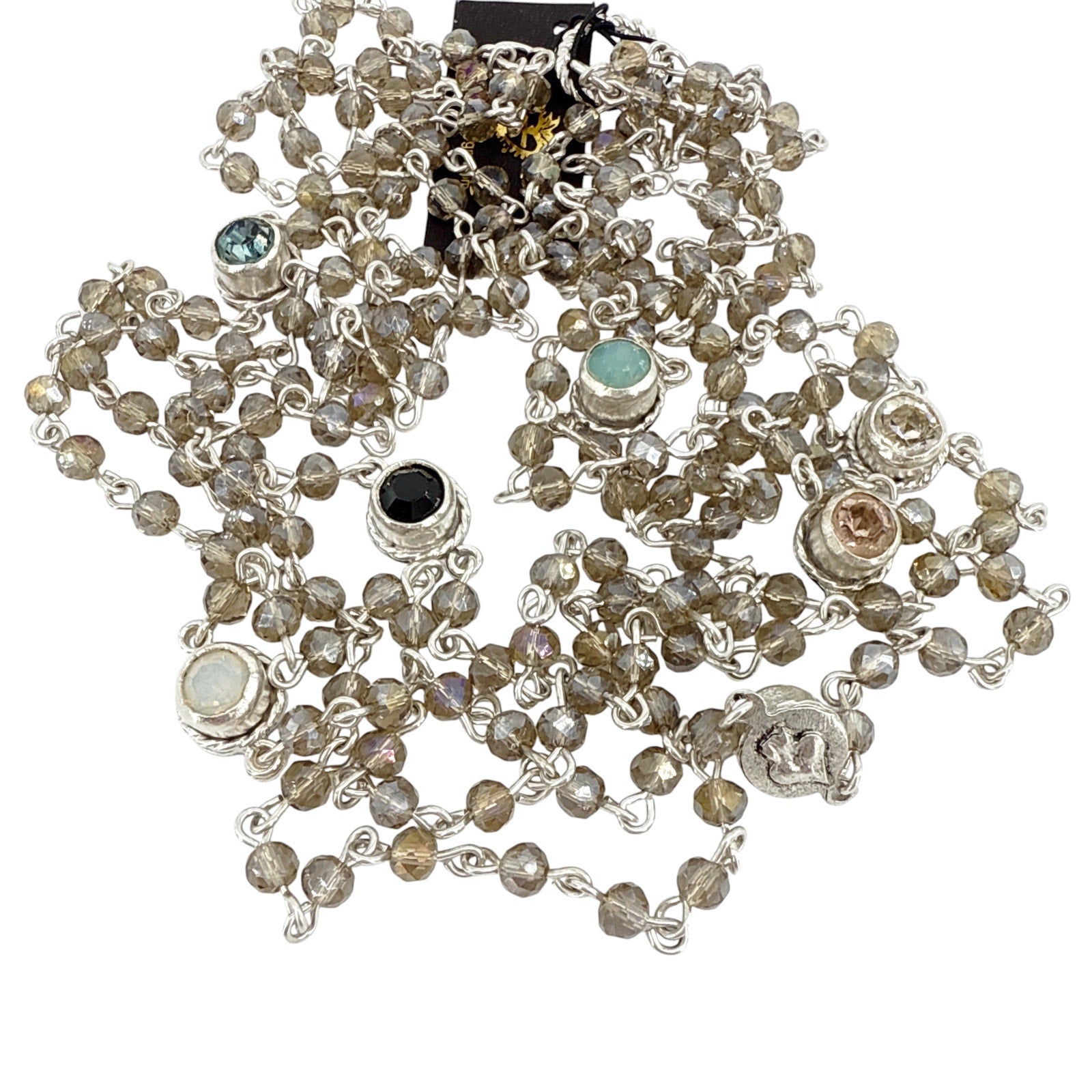 Over the years, they have made several versions of this iconic piece - precious beads, bicones, pearls, and many medallions have come and gone - but today, the original design is back! Featuring multi-colored crystals on black diamond Austrian crystal beads, the Magdalena carries an extra touch of the divine.