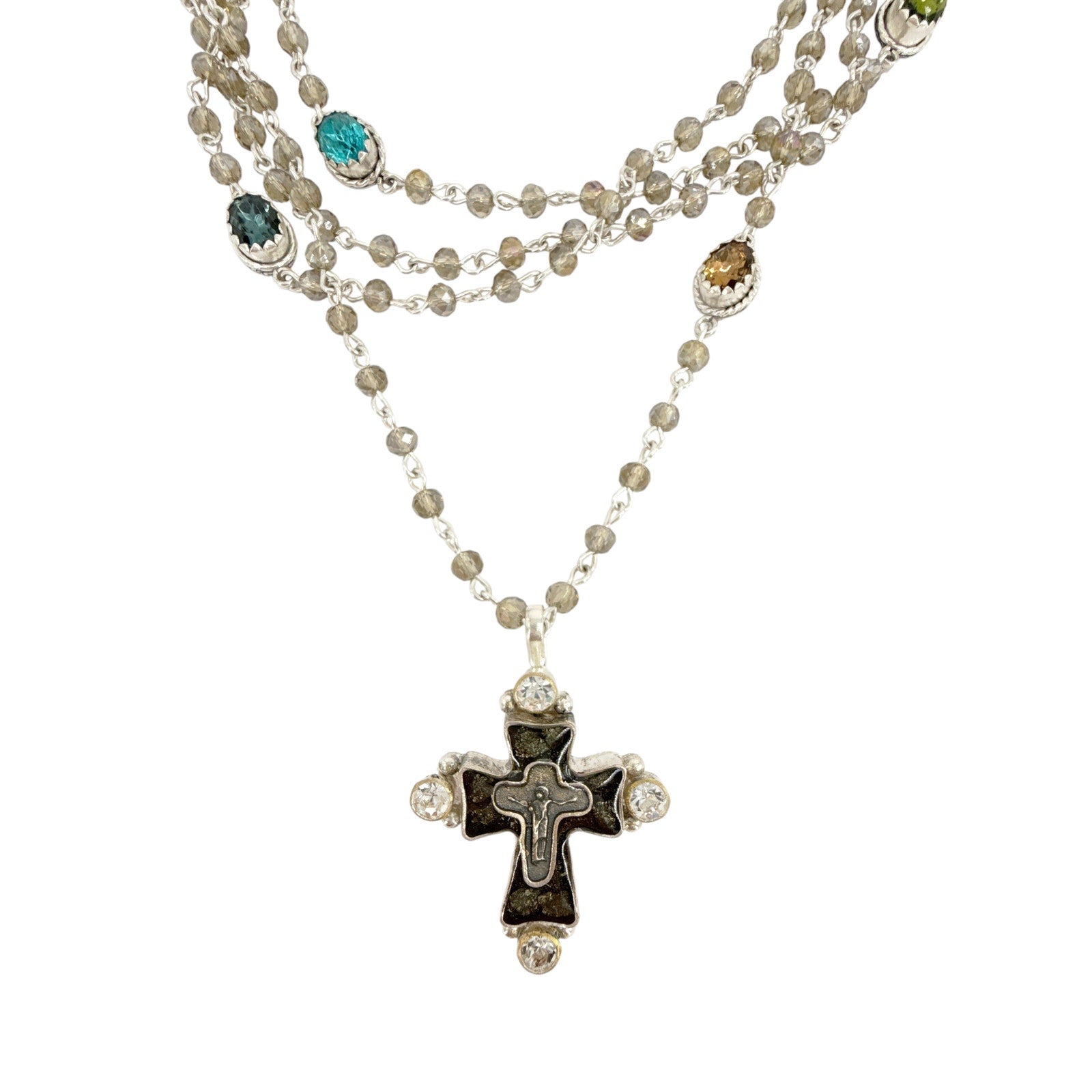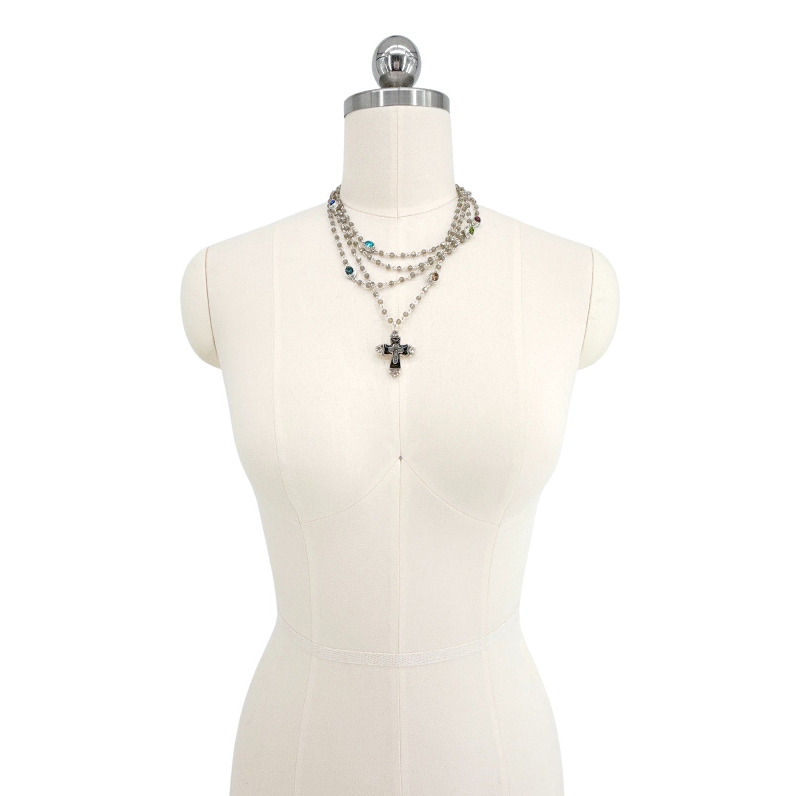 Over the years, they have made several versions of this iconic piece - precious beads, bicones, pearls, and many medallions have come and gone - but today, the original design is back! Featuring multi-colored crystals on black diamond Austrian crystal beads, the Magdalena carries an extra touch of the divine.