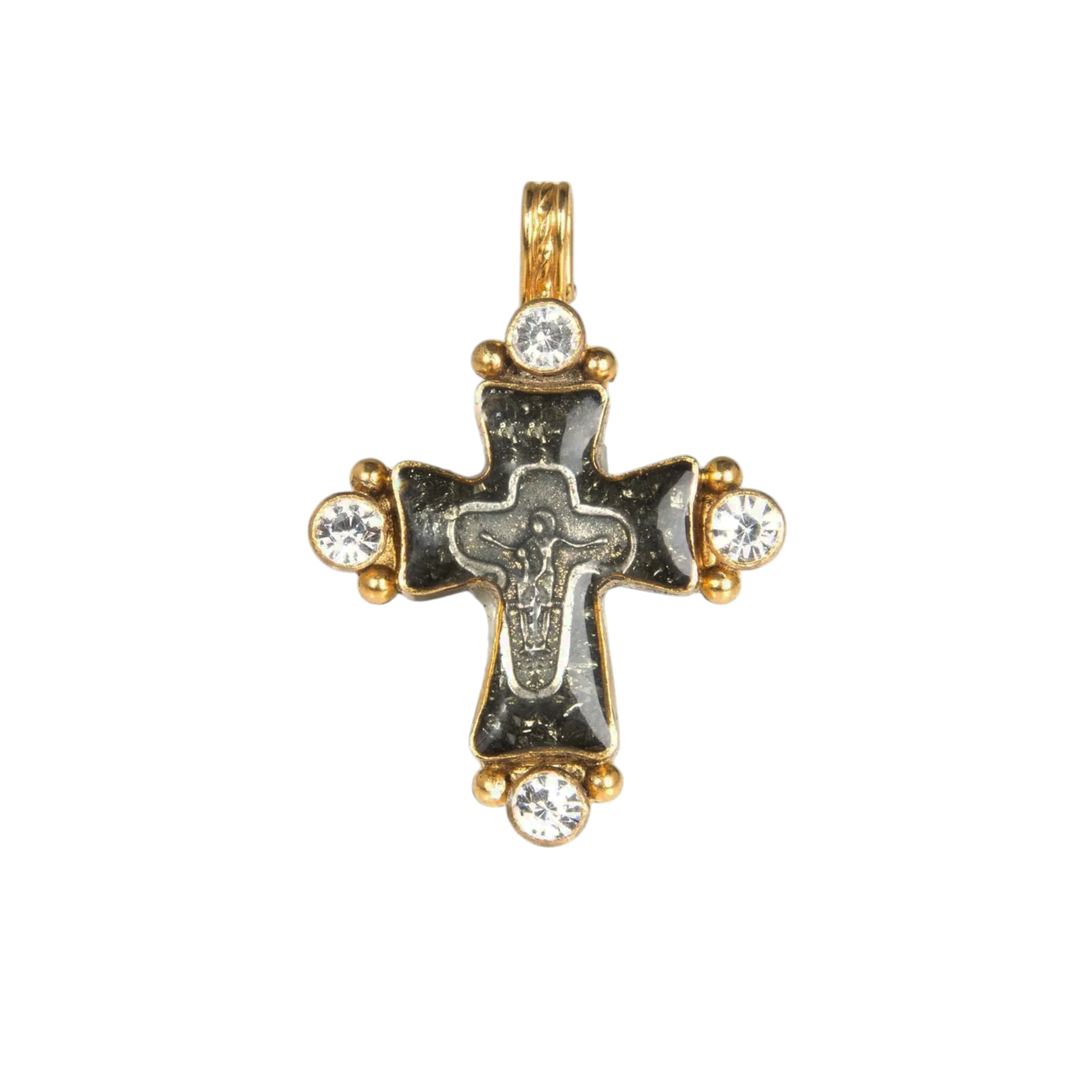 The Maria Cross Medallion captures the poignant moment of Maria Magdalena tenderly wiping the brow of Jesus during crucifixion. Handcrafted with meticulous care to endure, it is encased under resin for lasting beauty. Adorned with sparkling Austrian crystals, this medallion is a testament to both elegance & craftsmanship.