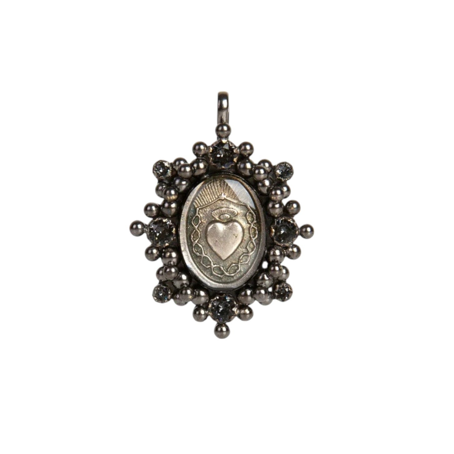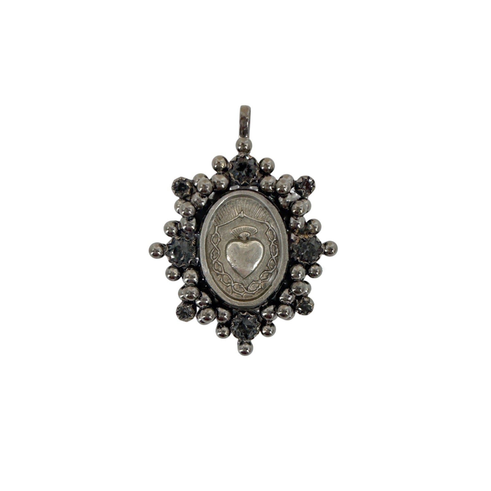 VIRGINS SAINTS & ANGELS VSA Oval Cloister Sacred Heart Medallion Gunmetal