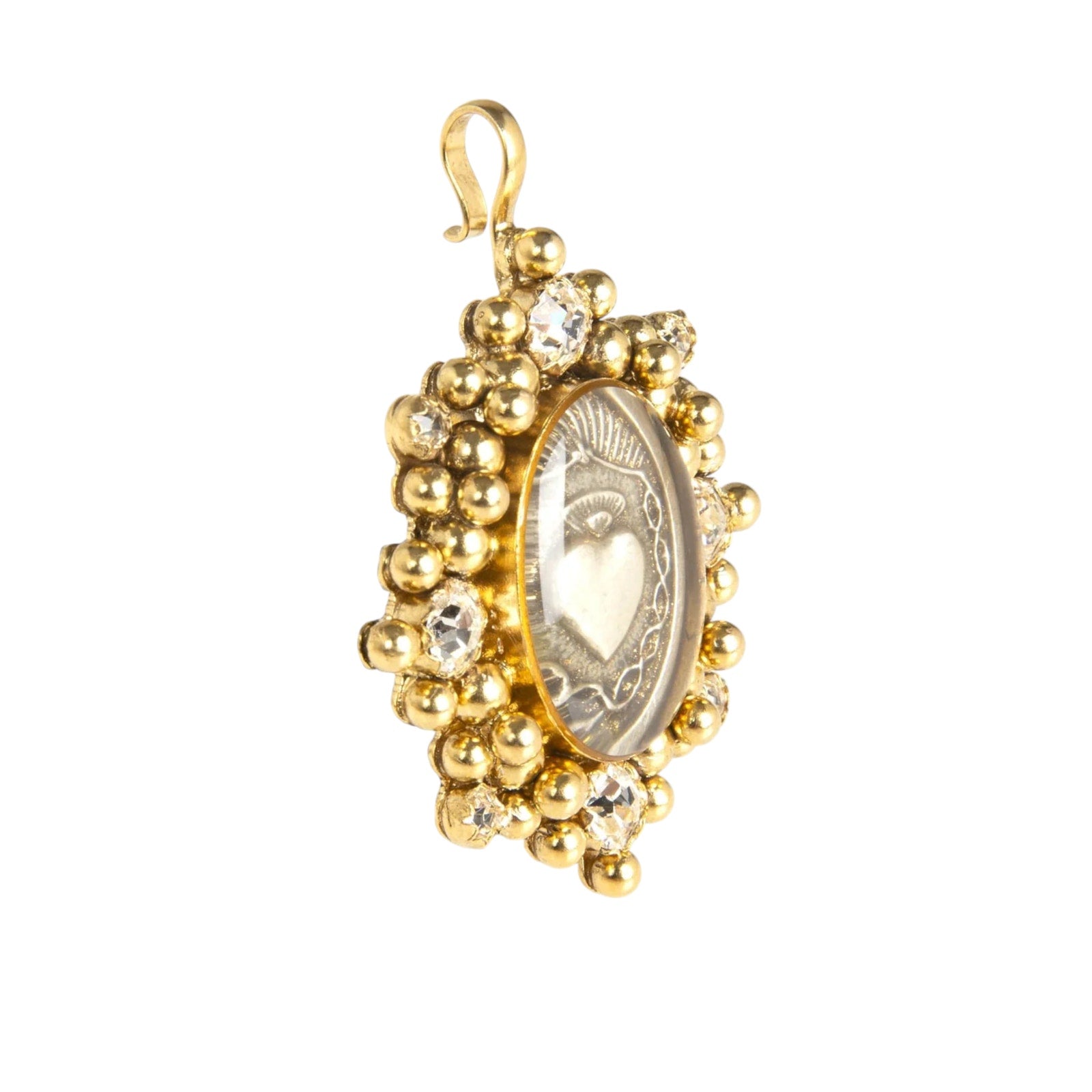 Handcrafted to perfection, the Virgins Saints & Angels' Cloister collection is inspired by centuries of spirituality, superstition, and good fortune. Inspired by the flames of divine love, the Sacred Heart Charm features Austrian crystals, proving that sparkling divine love is well worth the burn.