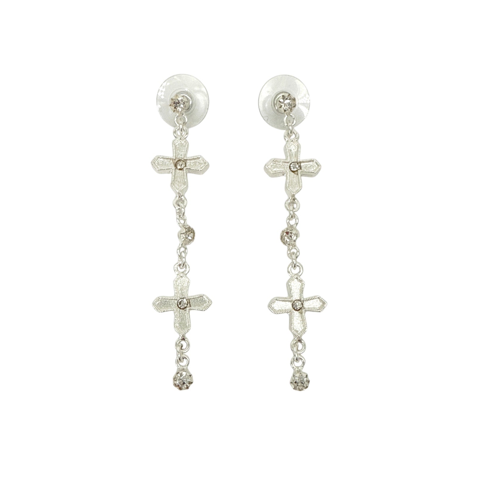 VIRGINS SAINTS & ANGELS VSA Peace Cross 2 Crystal Drop Post Earrings in Silver
