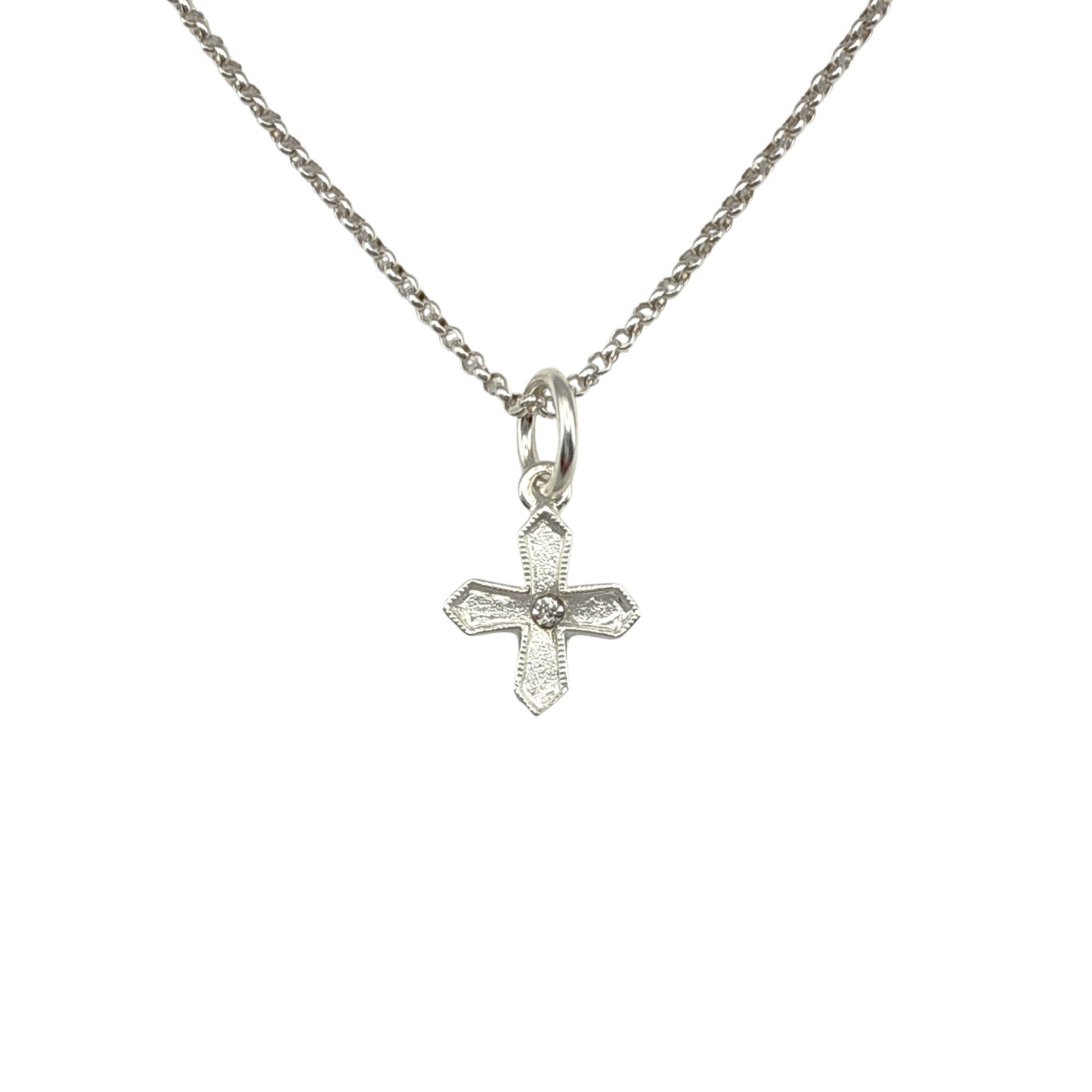 VIRGINS SAINTS & ANGELS VSA Peace Cross Charm SS Chain Necklace in Silver