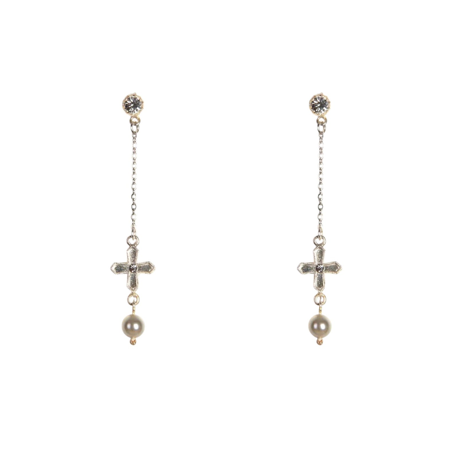 VIRGINS SAINTS & ANGELS VSA Peace Cross Pearl Drop Post Earrings in Silver