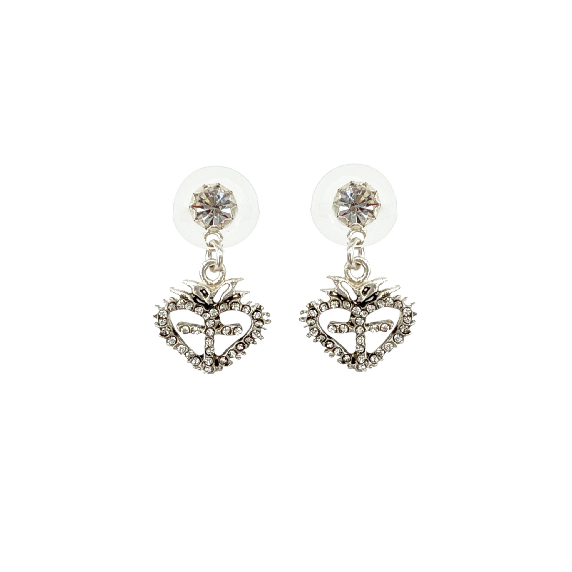VIRGINS SAINTS & ANGELS VSA Queen of Hearts Crystal Drop Post Earrings in Silver