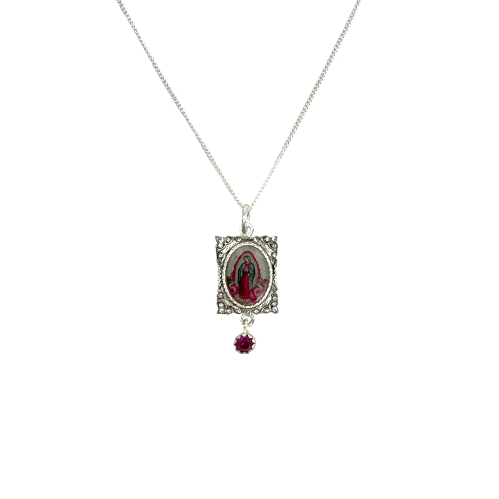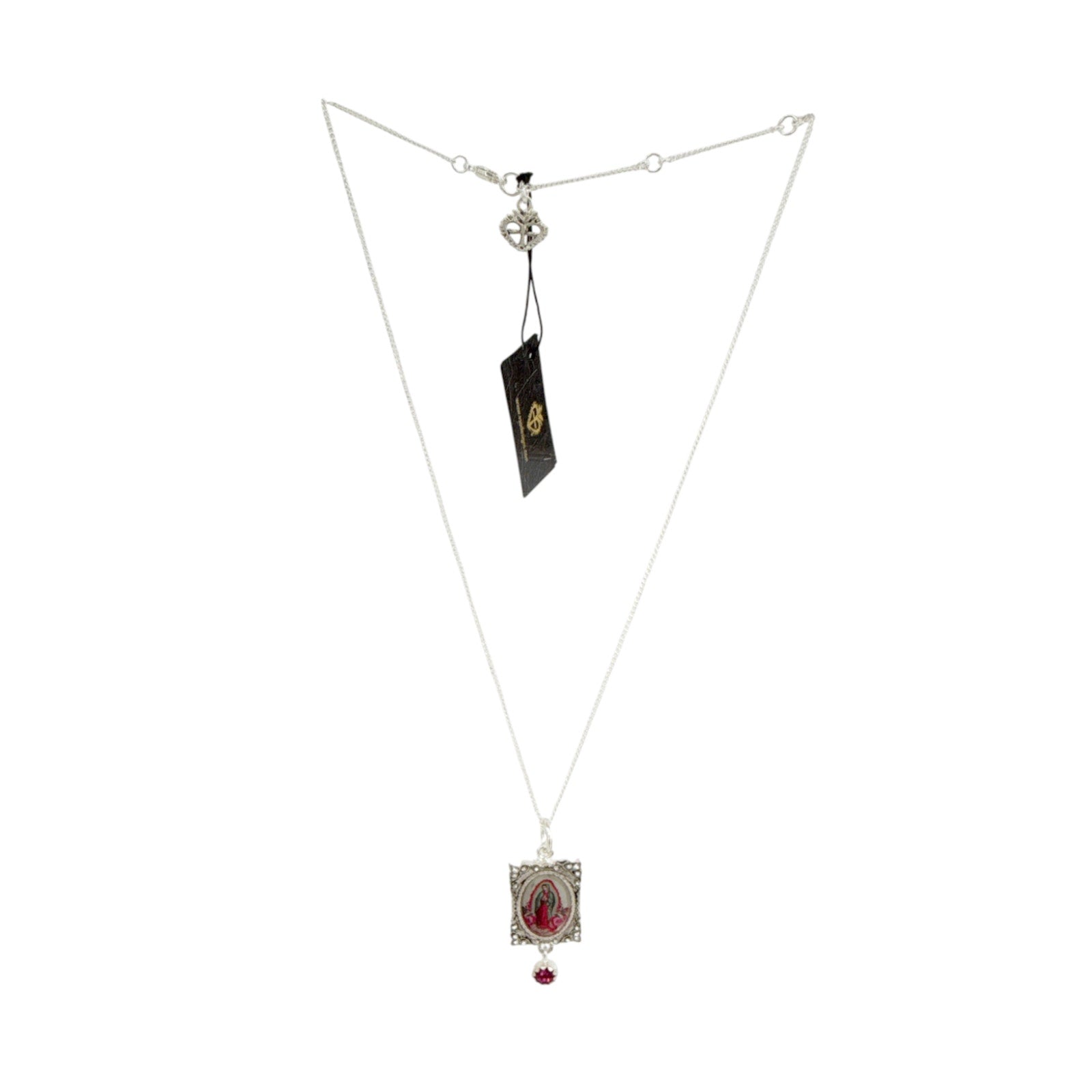 VIRGINS SAINTS & ANGELS VSA Retablo Pink Guadalupe Charm Necklace in Silver