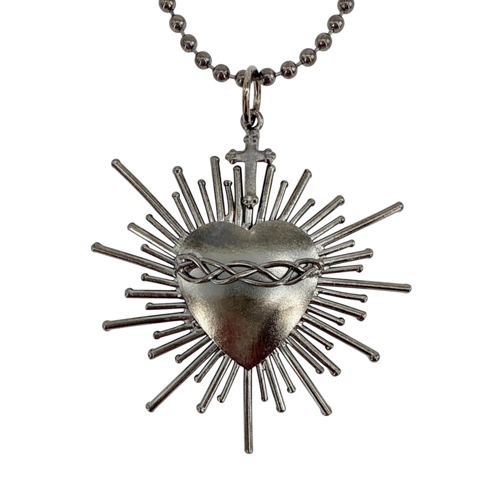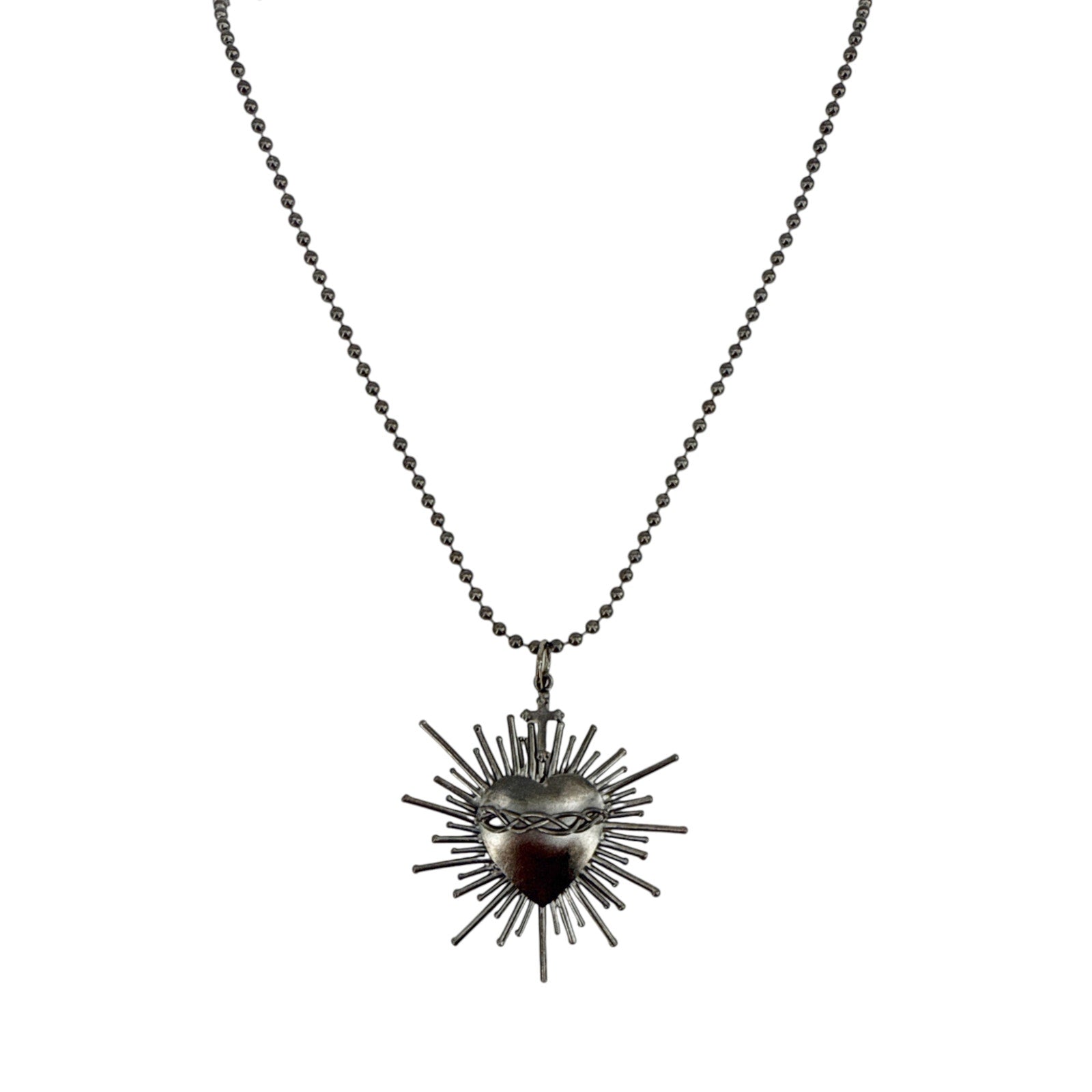 VIRGINS SAINTS & ANGELS VSA Sacred Flame Charm Necklace Gunmetal 34" Ball Chain