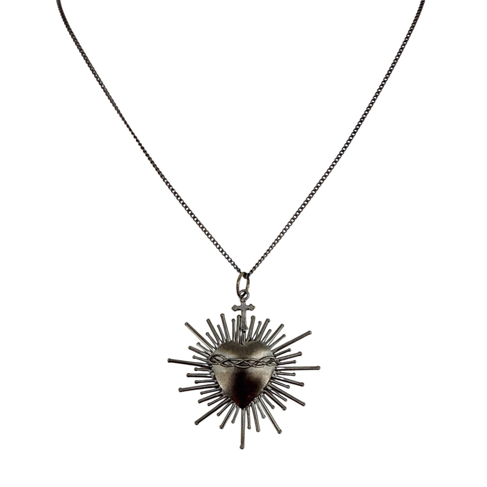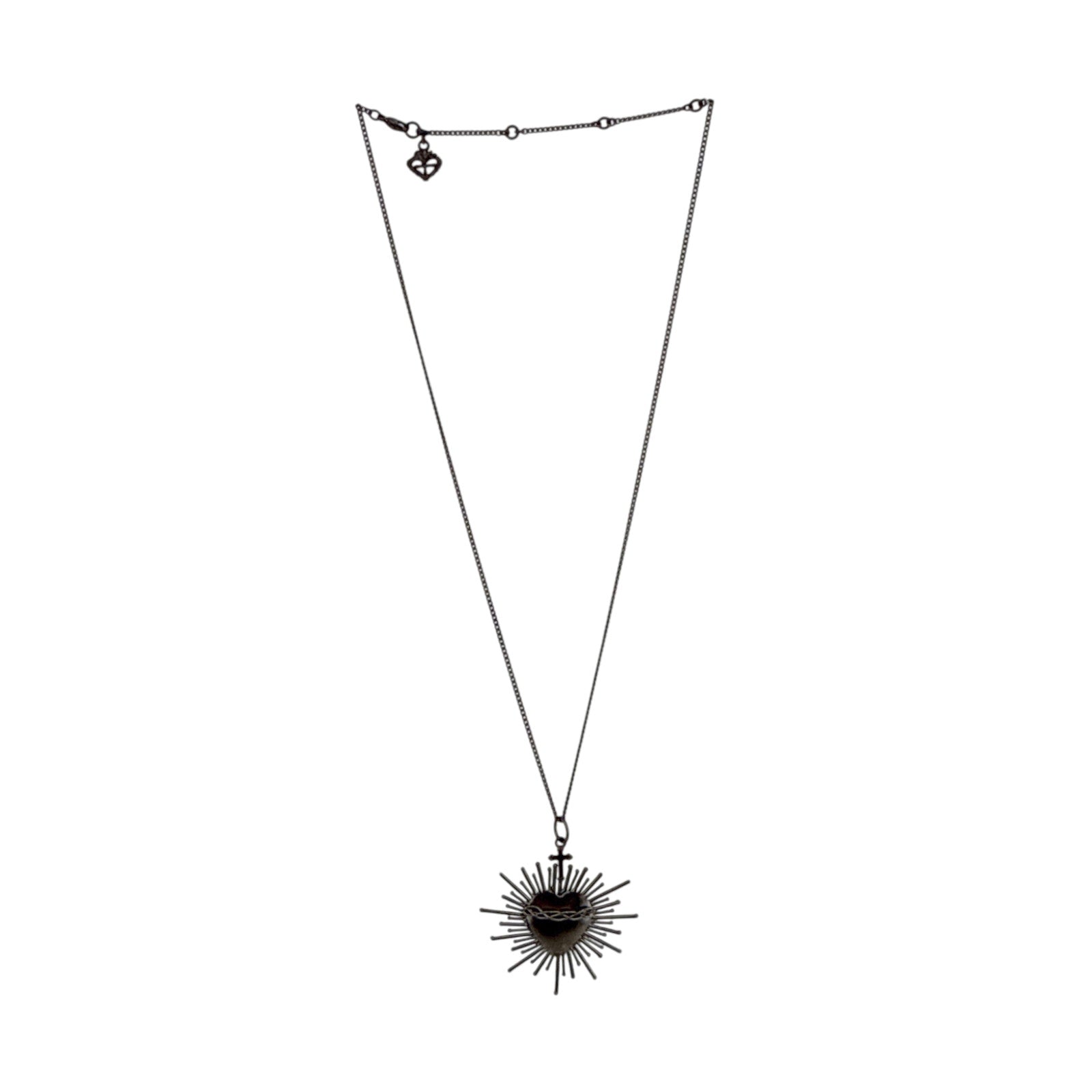 VIRGINS SAINTS & ANGELS VSA Sacred Flame Charm Necklace in Gunmetal 20"