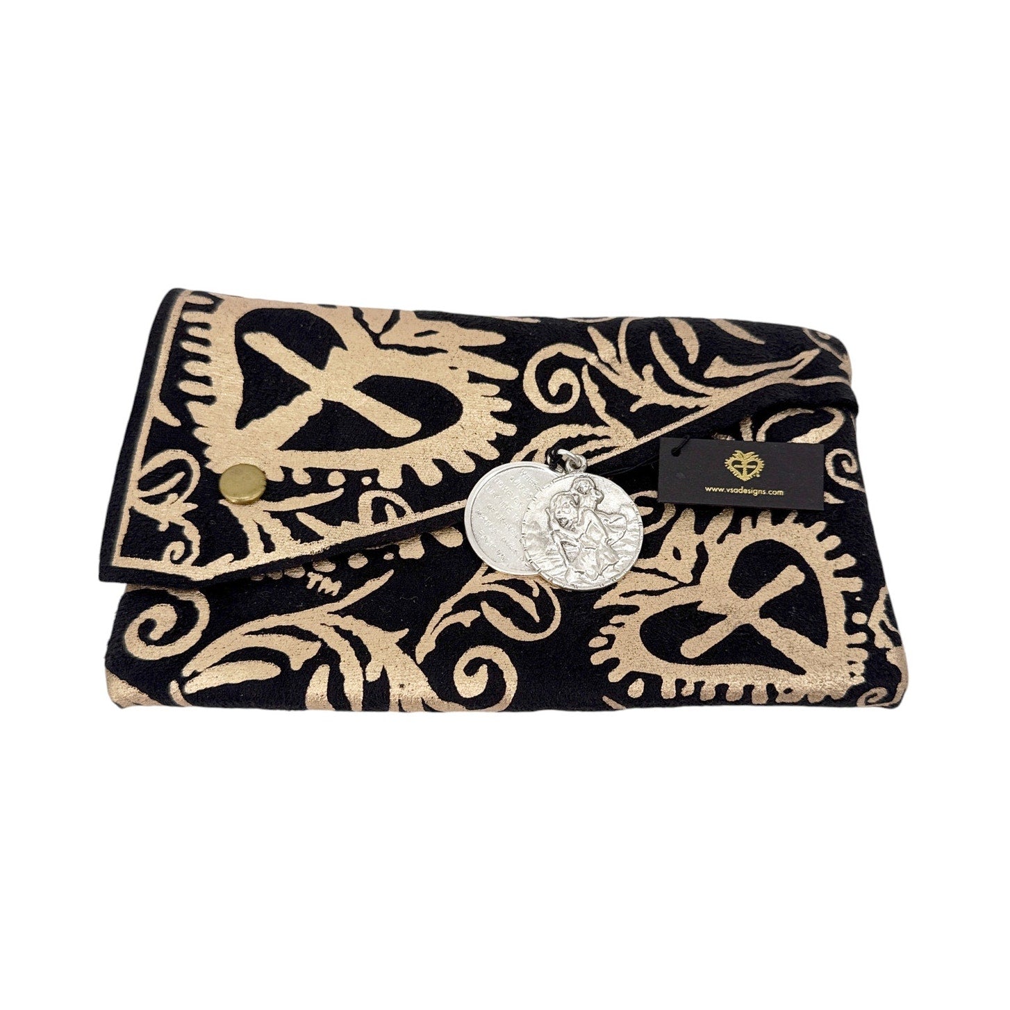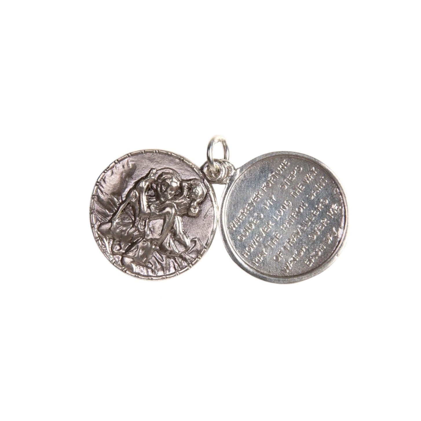 It’s a 2 disc pendant, one with St. Christopher and the other has inscribed, “Wherever fortune guides my steps, however long the way, may the Patron Saint of travelers watch over me each day“.