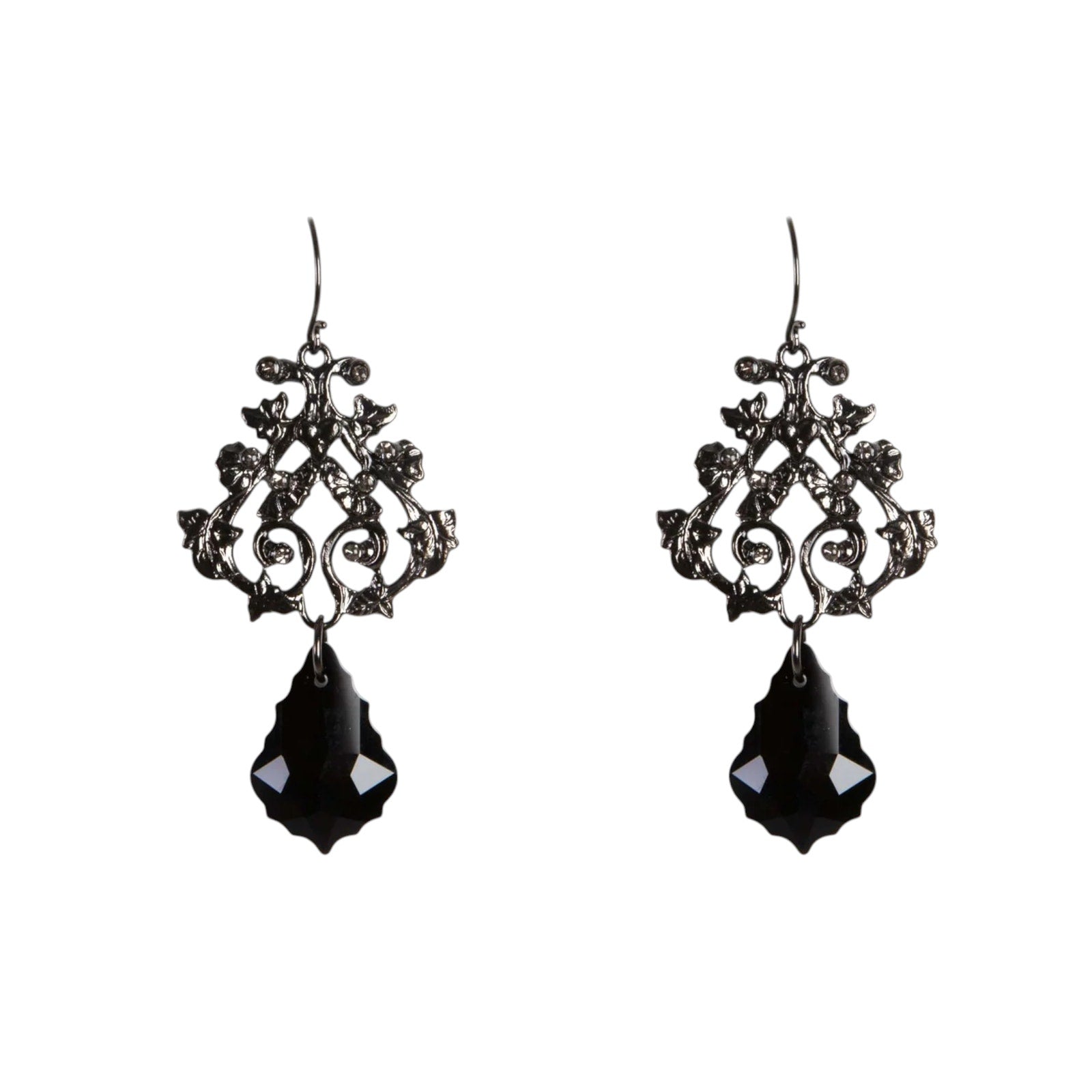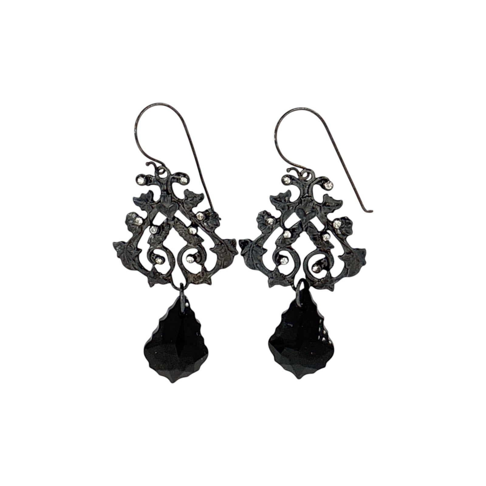 VIRGINS SAINTS & ANGELS VSA Vine Drop Earrings in Gunmetal & Jet