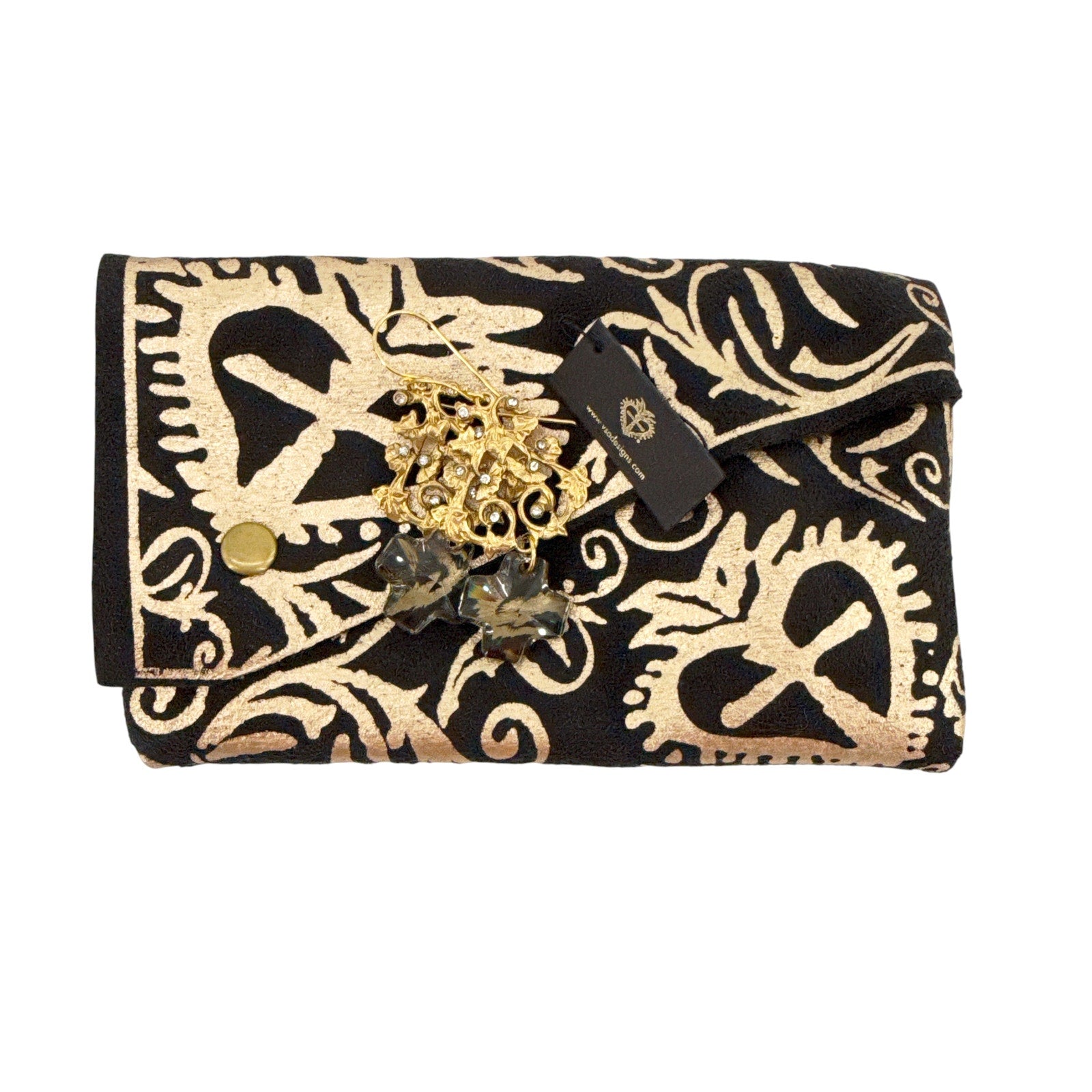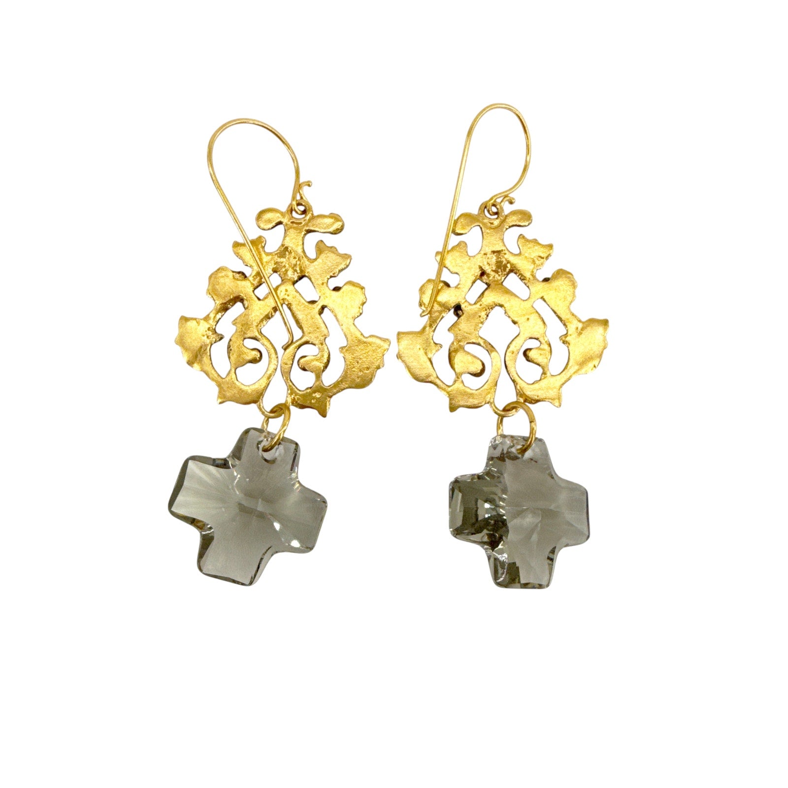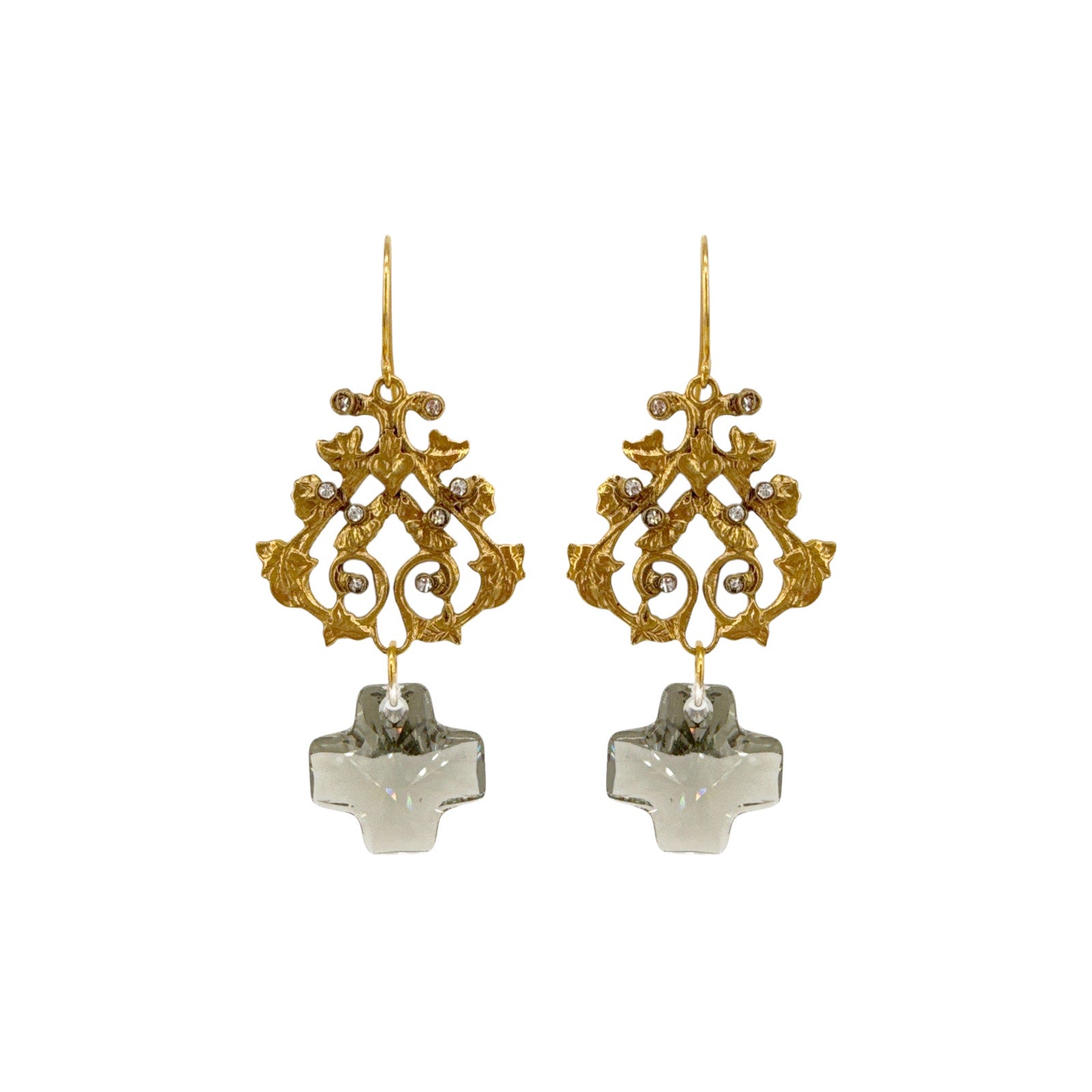 VIRGINS SAINTS & ANGELS VSA Vine Earrings with Cross in Gold & Black Diamond