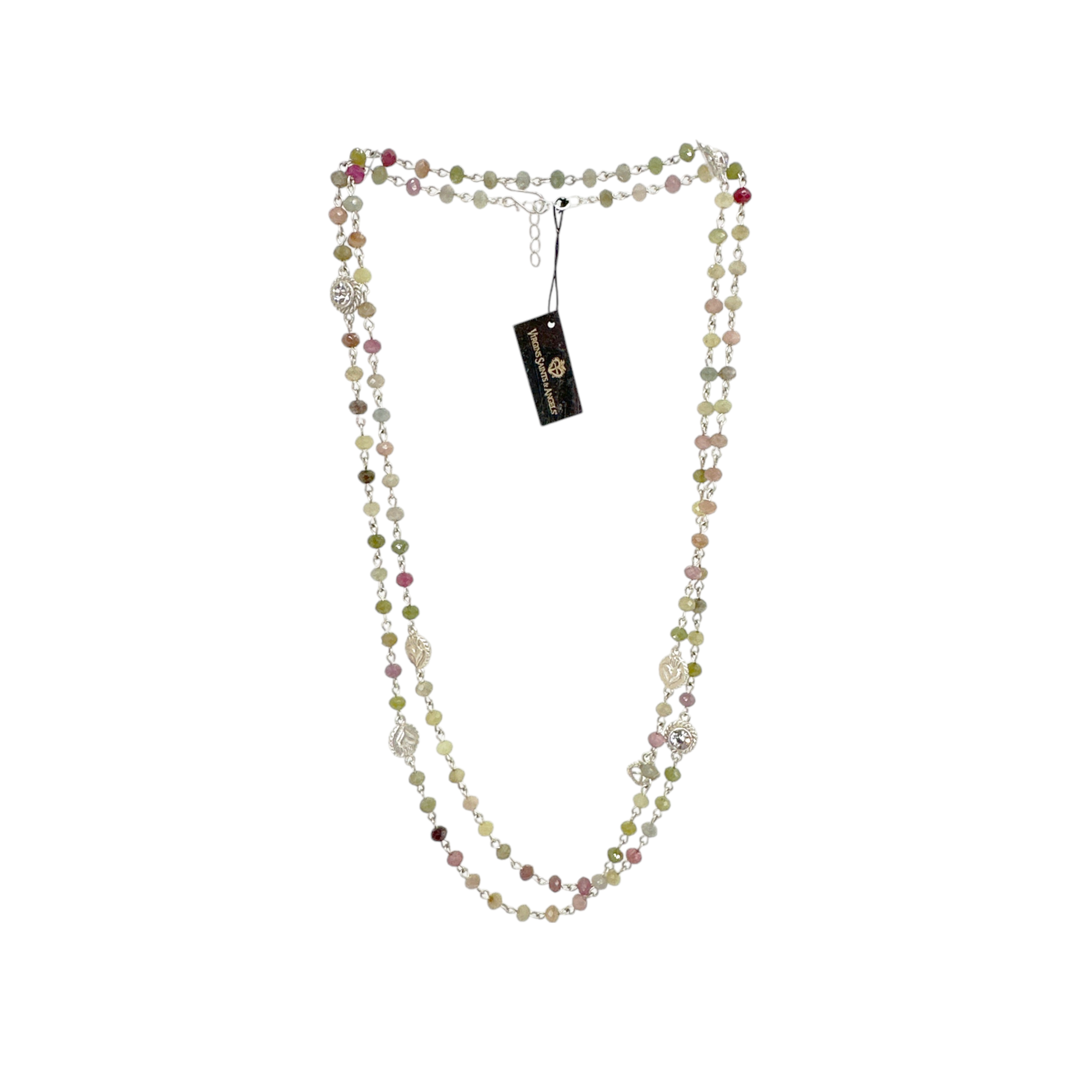 Wrap designs were created with versatility in mind, hand-strewn in a rosary-inspired style to be worn how you like it– long or short, wrapped as a choker, bracelet, or even an anklet.