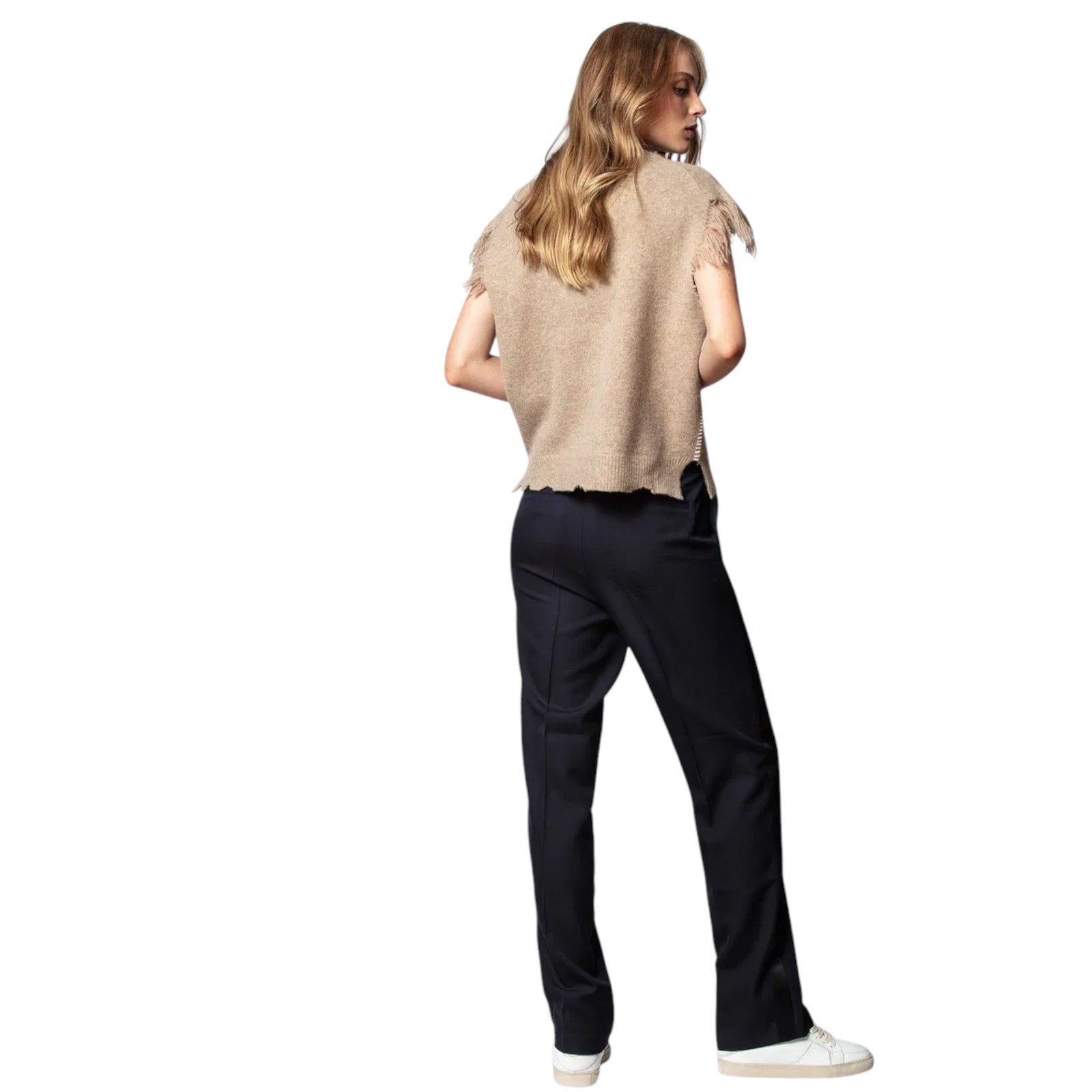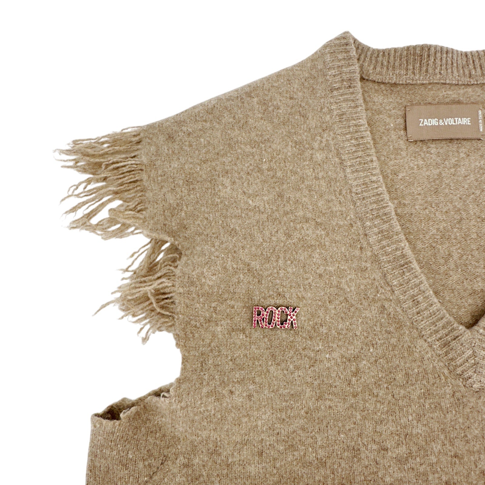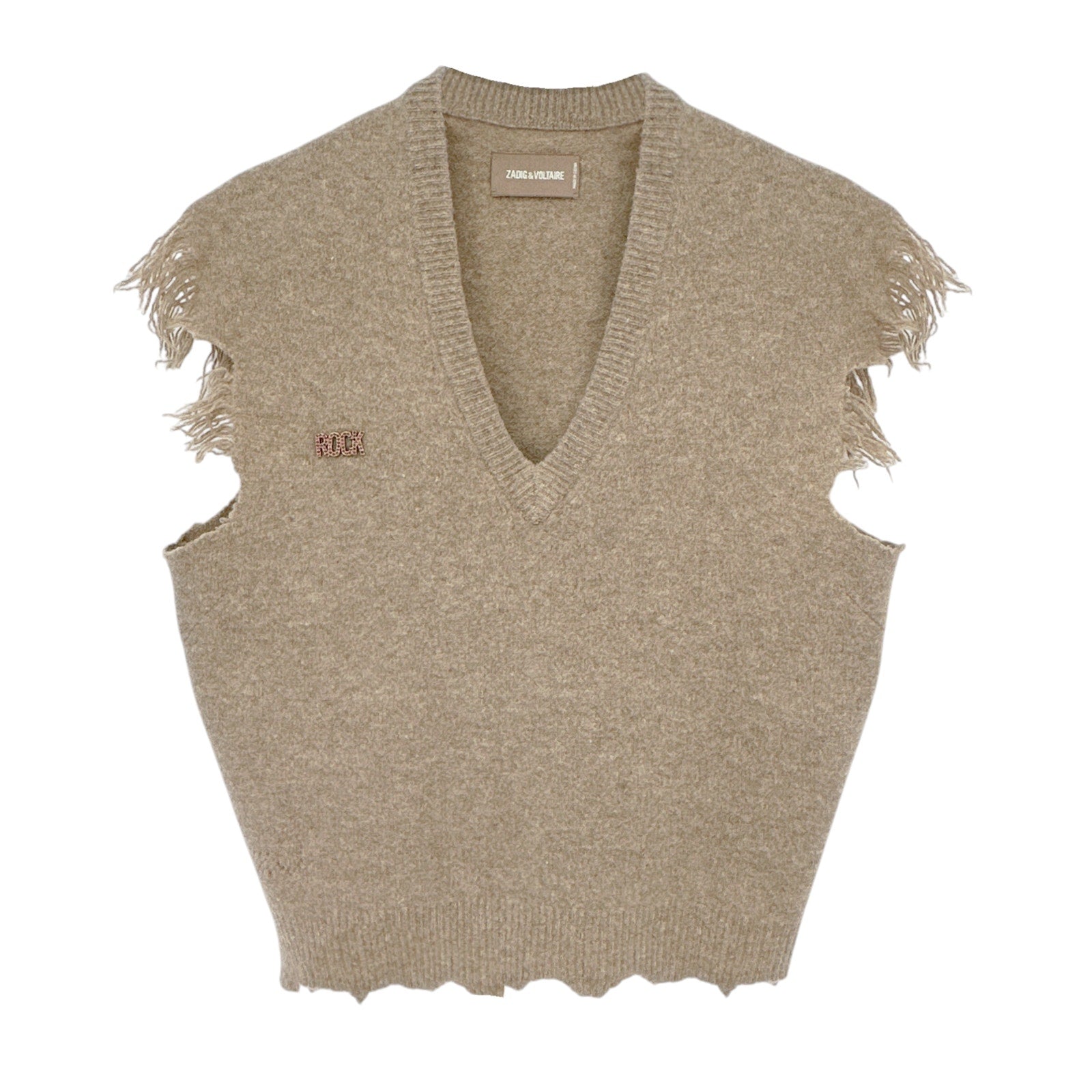 Zadig & Voltaire sleeveless sweater, frayed finishes, removable ROCK brooch in rhinestone on the chest, in Woolmark® certified merino wool. The Woolmark Company guarantees the quality of this exceptional, soft and silky fiber.