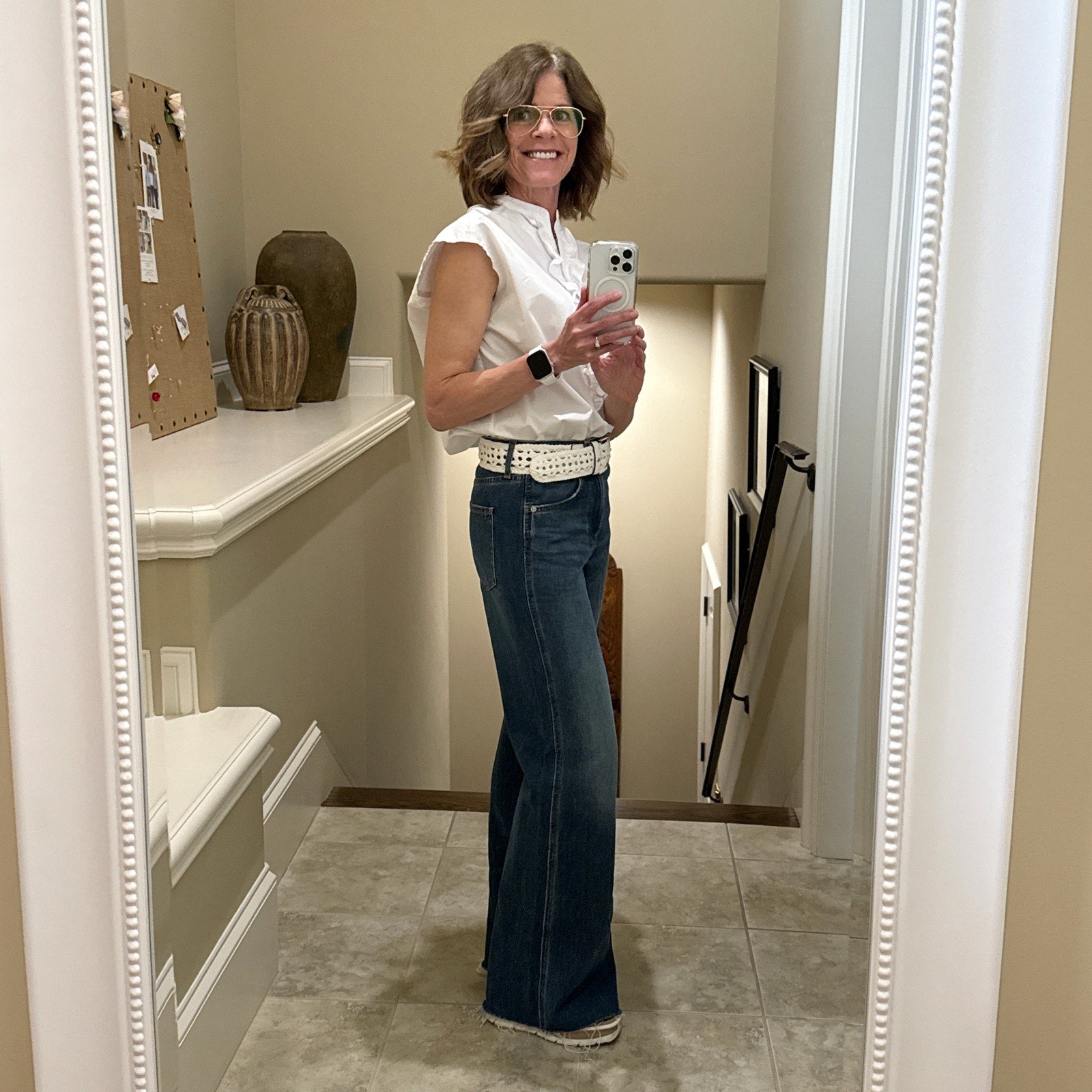 Romantic ruffles and a structured shape feature on this delicately buttoned sleeveless top.